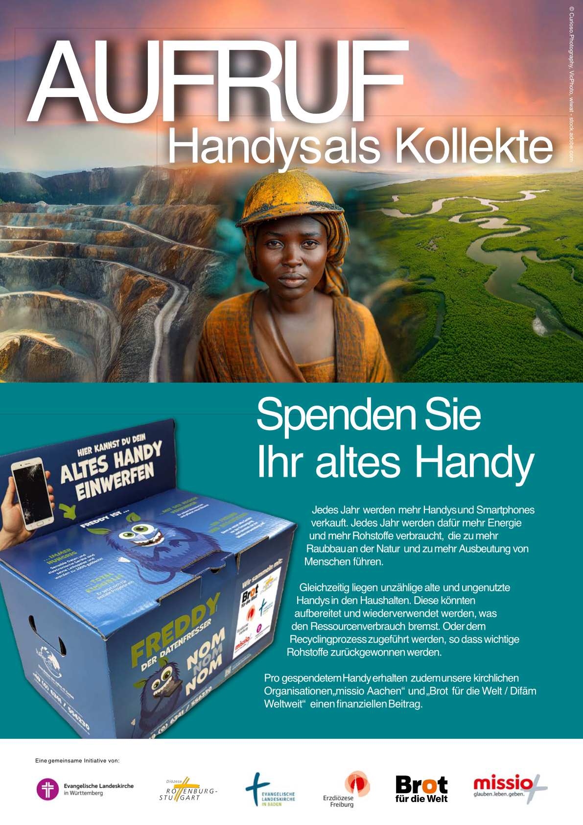 Sie können Ihr ausrangiertes Handy oder Tablet in der Kirche oder während der Bürozeiten des Pfarramtes abgeben.