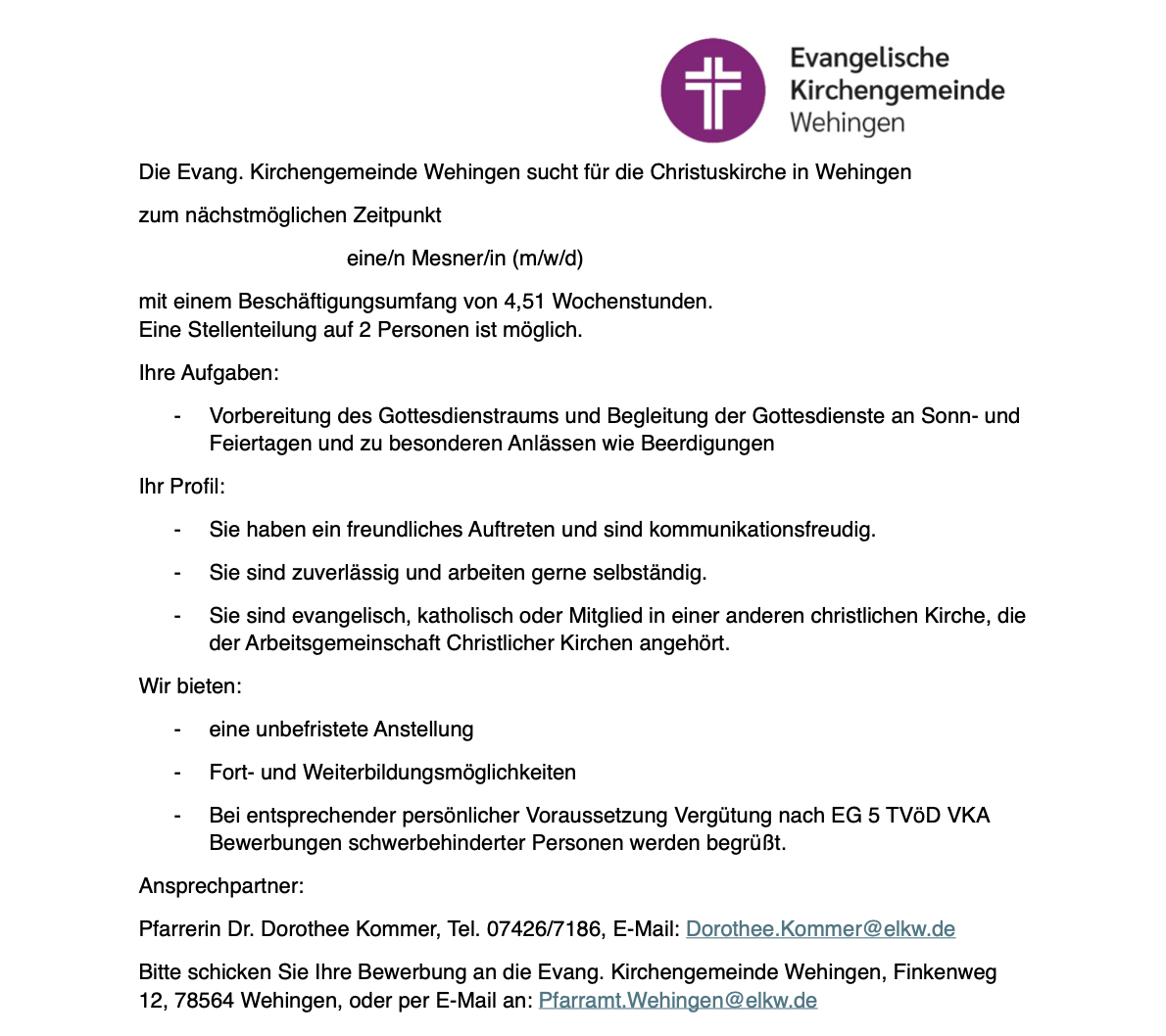 Fon 07426/7186 Mail: Pfarramt.Wehingen@elkw.de